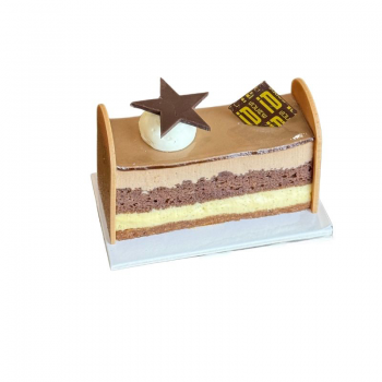 Ingrédients : crème liquide (crème, stabilisant : carraghénane), chocolat au lait (sucre, beurre de cacao, poudre de lait entier, pâte de cacao, poudre de lait écrémé, émulsifiant : lécithine de soja, arôme naturel de vanille), jaune d'oeuf, sucre semoule, lait entier, pâte de noisette, blanc d'oeufbeurre, farine de blé, poudre de cacao, gélatine, eau, sirop de glucose, gélifiant (pectine), vanille en gousse.