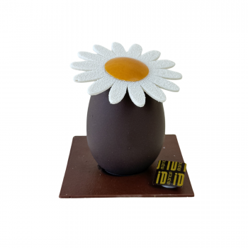 Laissez-vous surprendre par notre œuf marguerite, entièrement en chocolat noir, garni d'un praliné délicatement enrobé et intégré au chocolat pour une texture à la fois croquante et fondante, accompagné de billettes en chocolat noir, lait et blanc une création artisanale aussi bluffante que gourmande pour un plaisir de Pâques inoubliable !