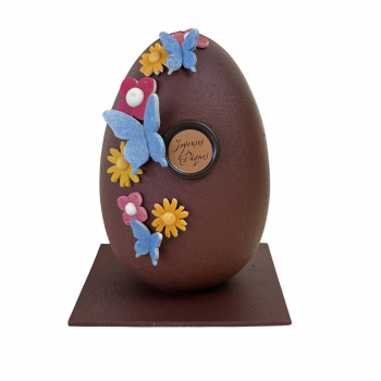 Célébrez Pâques avec notre oeuf en chocolat noir, décoré de jolis papillons en chocolat