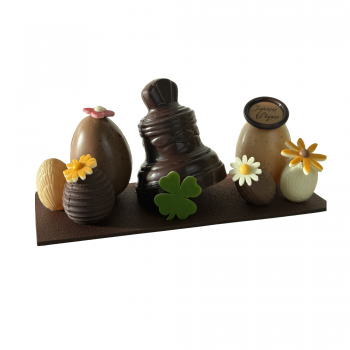 Découvrez notre réglette de Pâques artisanale, un assortiment de chocolats lait, noir, blanc et blond, confectionnée avec soin par nos maîtres chocolatiers, une véritable invitation au voyage des saveurs, faite à la main pour un plaisir unique et authentique !