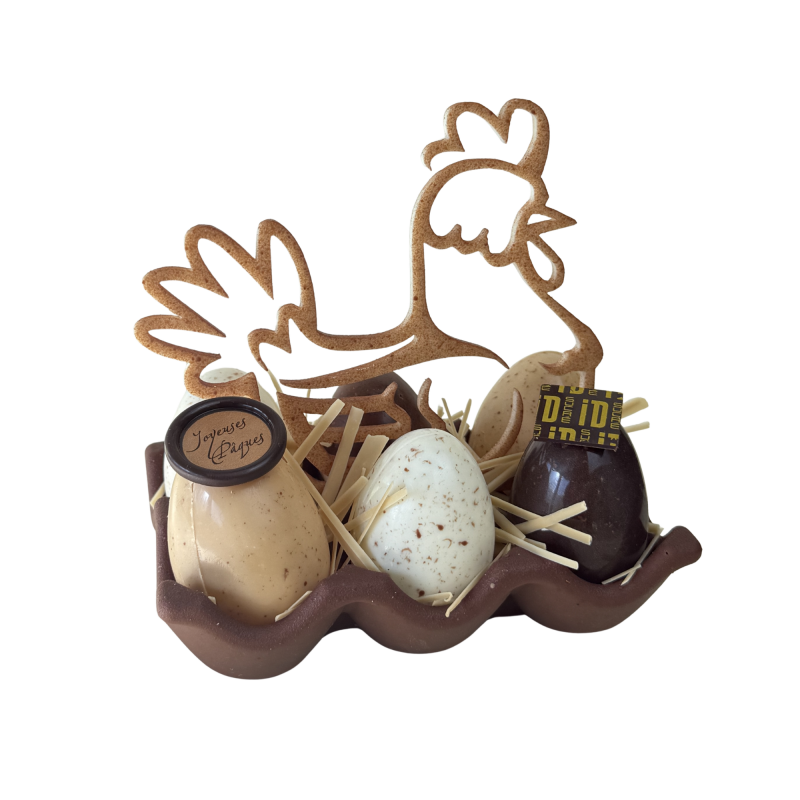 Offrez-vous une boîte de 6 œufs en chocolat artisanaux en trompe l'œil, méticuleusement réalisés à la main par nos chocolatiers experts, une véritable œuvre d'art gourmande qui allie beauté et saveur pour une expérience inoubliable de Pâques !