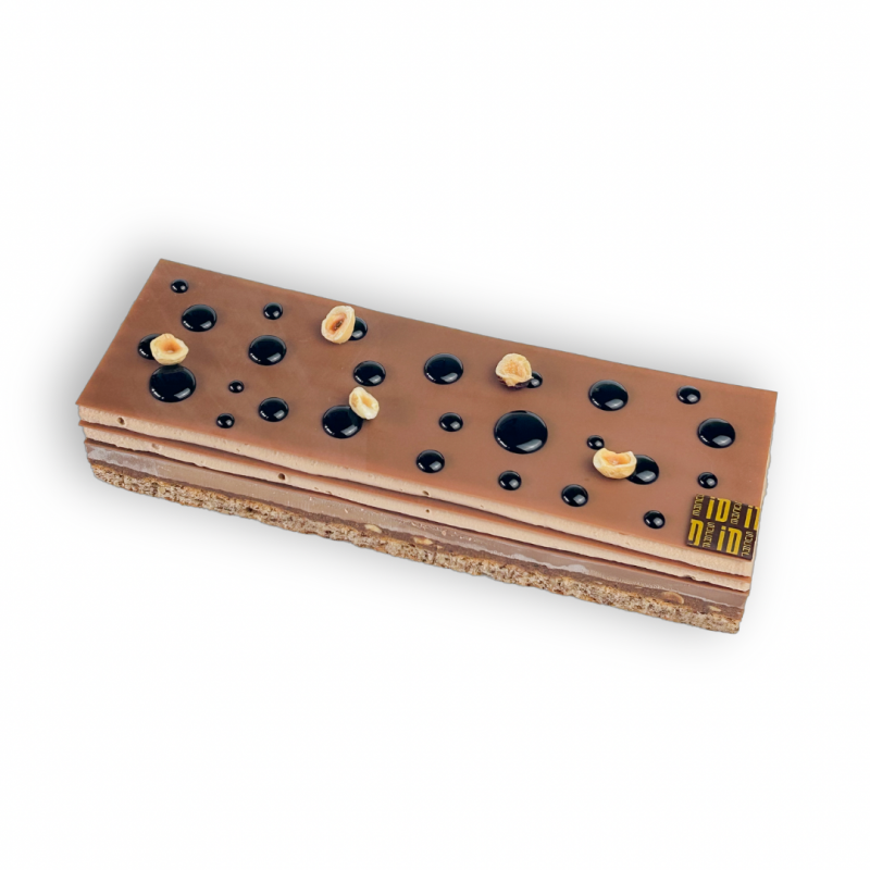 crème(crème, stabilisant : carraghénane ) , chocolat au lait (beurre de cacao, lait entier en poudre, sucre, fèves de cacao, sucre roux, extrait naturel de vanille, émulsifiant : lécithine de soja, extrait de malt ( d'orge), chocolat au lait (sucre, beurre de cacao, poudre de lait entier, pâte de cacao, poudre de lait écrémé, émulsifiant : lécithine de soja, arôme naturel de vanille), sucre glace, blanc d'oeuf, poudre de noisettes, sucre semoule, biscuit au beurre (farine de blé, sucre, beurre, lait, sel, extrait de malt (orge), poudre à lever), noisette, mascarpone (lait), eau, beurre, sirop de glucose, poudre de cacao, sucre inverti, gélatine, vanille en gousse